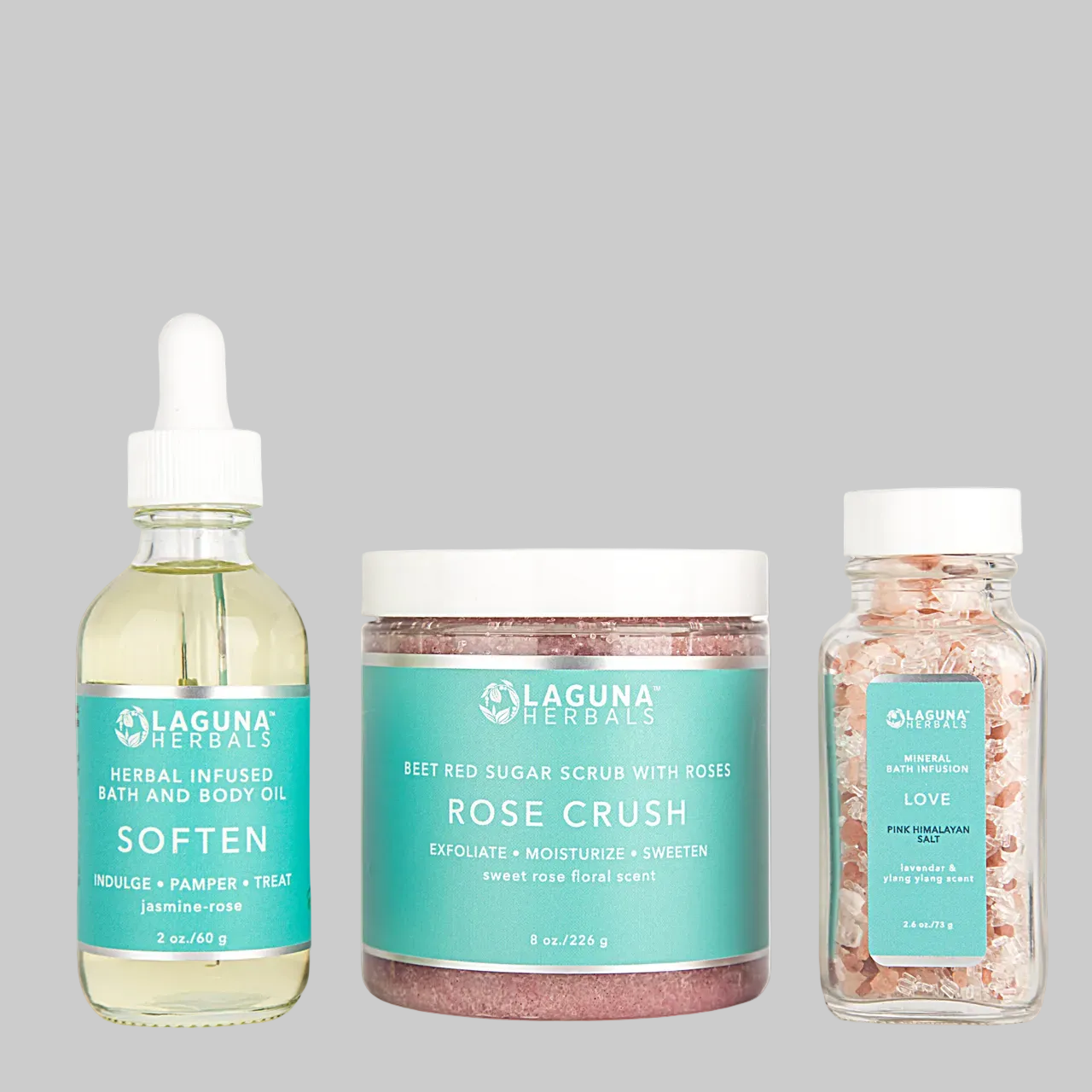 Soak in naturally occurring pink Himalayan aroma therapeutic spa salts, followed by a full body scrub loaded with roses, reparative kokum butter and hydrating coconut oil Then finish with a luxurious body oil infused with skin loving botanical extracts scented with essential oil derived jasmine-rose.
